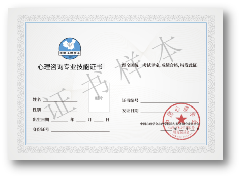 我国心理学权威单位中国心理学会心理标准与服务研究委员会评审通过 心理咨询专业技能证书。 证书适用人群: 心理咨询师、教育工作者、社会工作者、医务工作者; 企业培训师、企
